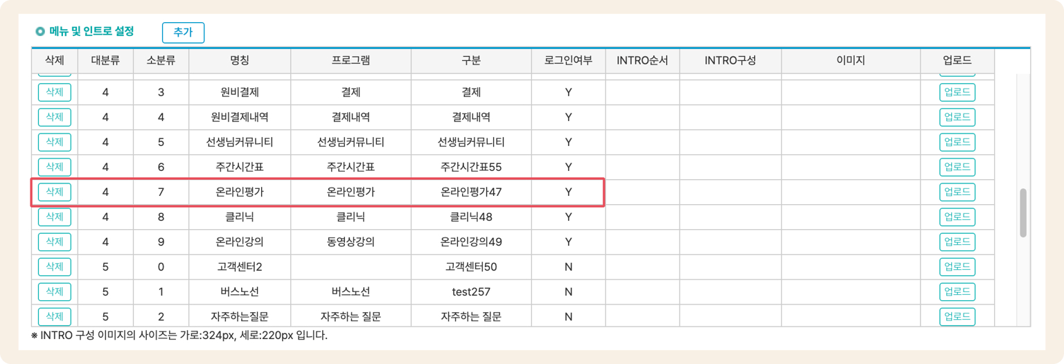 홈페이지 설정의 '메뉴 및 인트로 설정'에서 온라인 평가 프로그램을 추가하면 학생의 아이디로 로그인 후 해당 메뉴에서 온라인 시험을 진행할 수 있습니다.