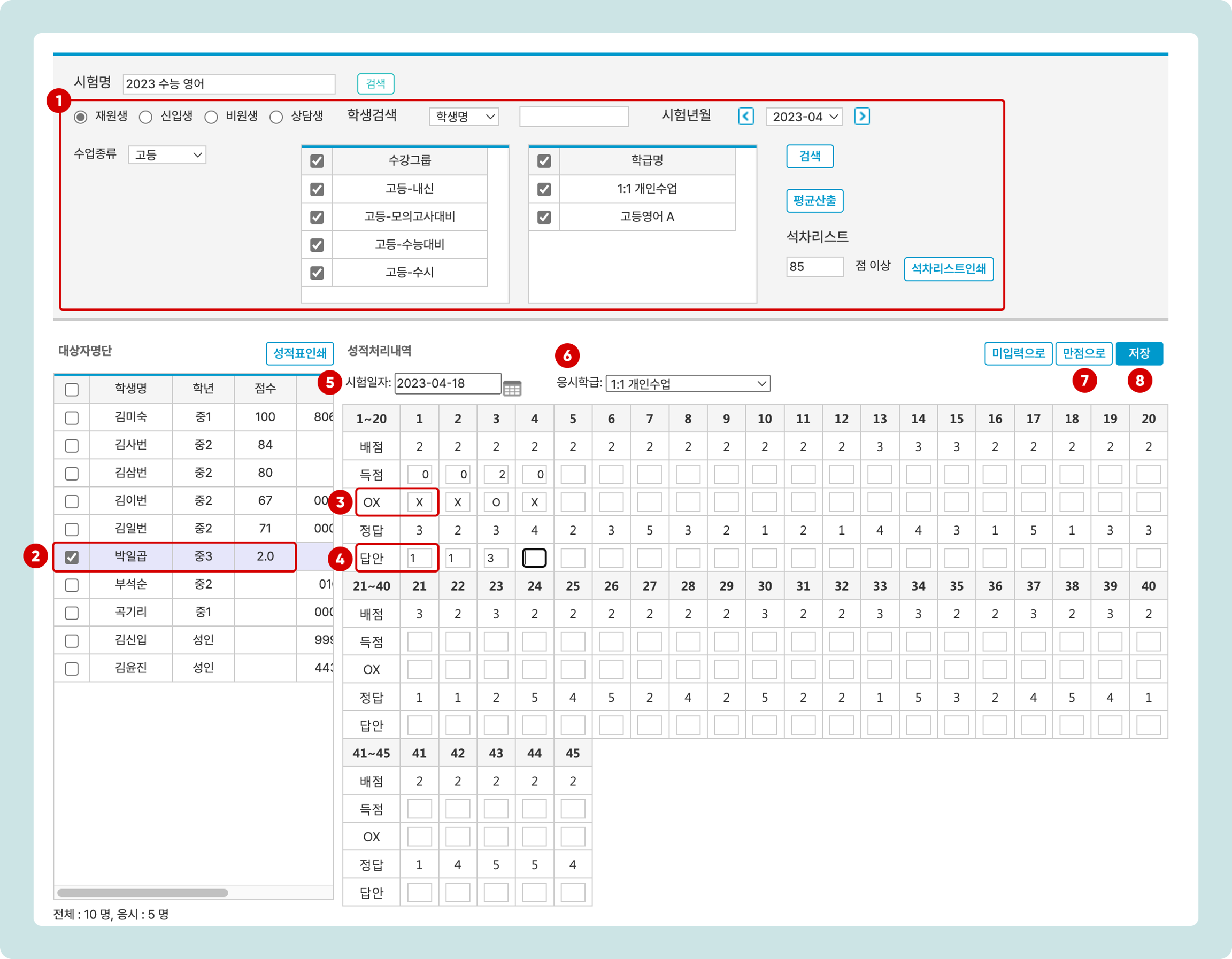 8. : [저장] 입력된 채점 결과를 저장 합니다.