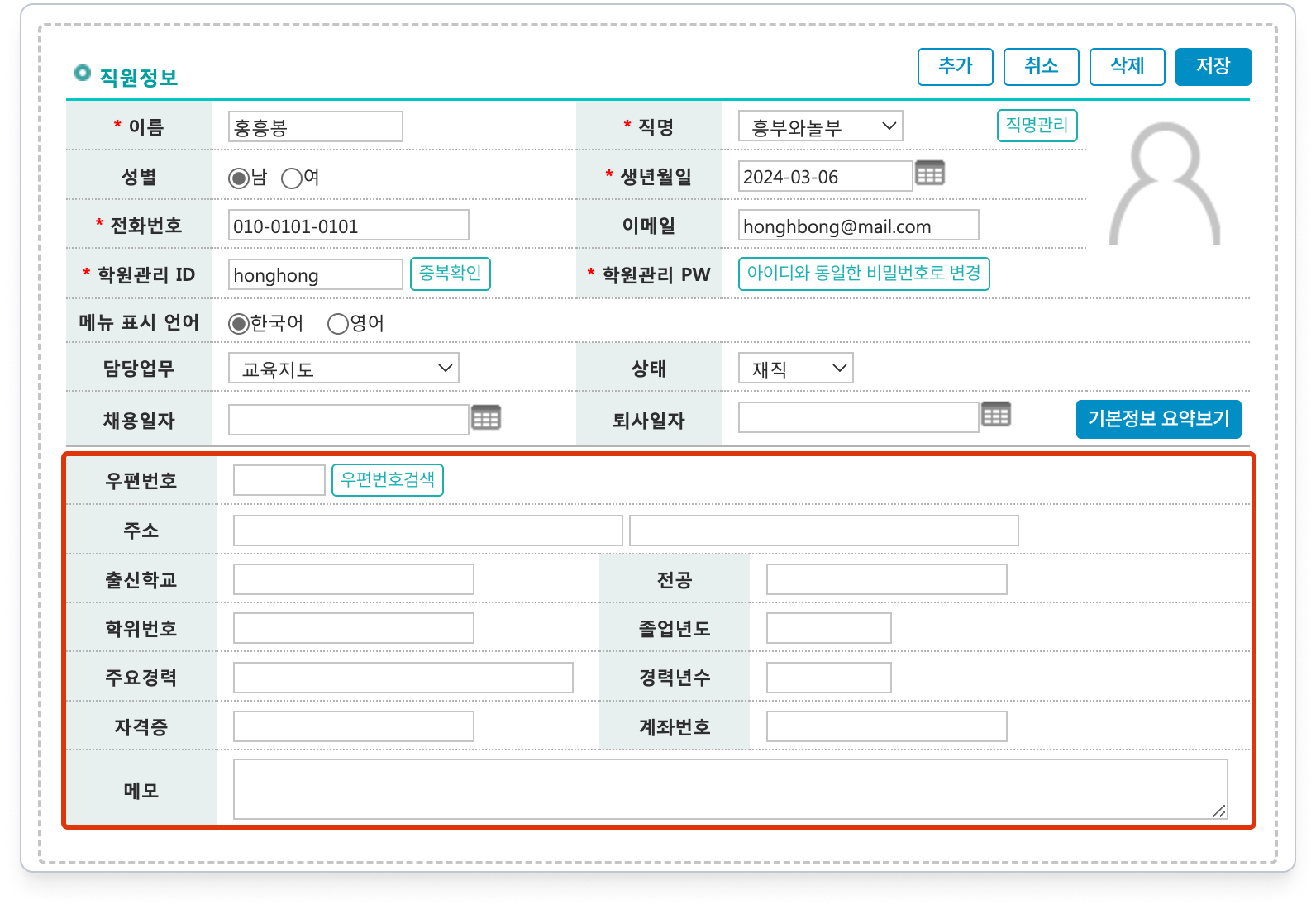 • 직원에 대한 상담, 급여정보를 관리할 수 있는 권한을 부여합니다.