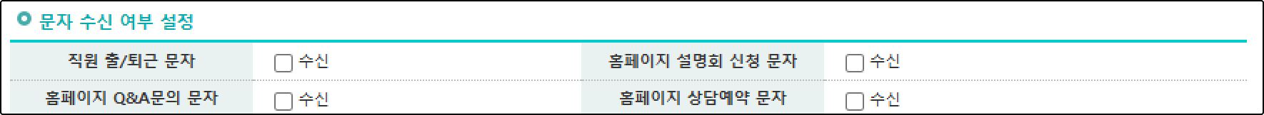 시스템에서 보내는 문자 수신 여부를 지정합니다. 신상 정보에 입력된 전화번호로 문자를 받습니다.