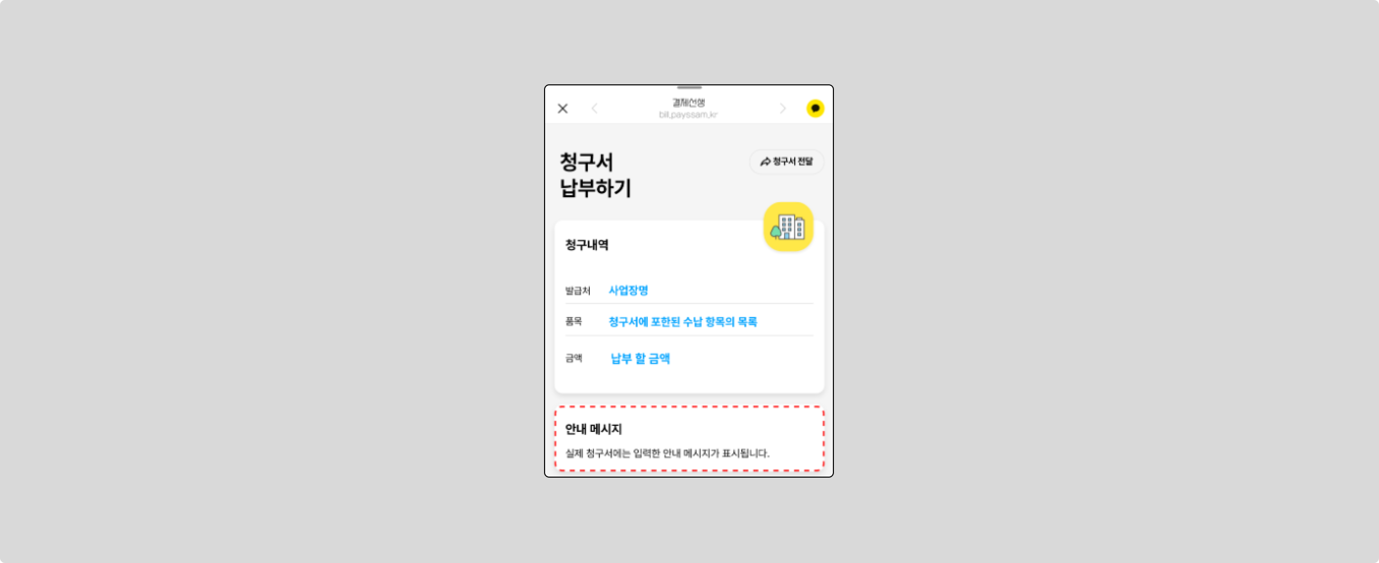 ✅안내 메시지 추가하기: 청구서에 공통된 안내 메시지를 추가할 수 있습니다.