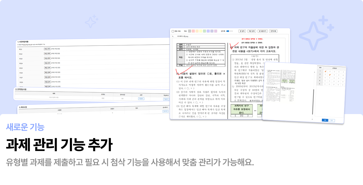 과제를 제출하면 확인 후 첨삭할 수 있어요.입학원서 기능 추가