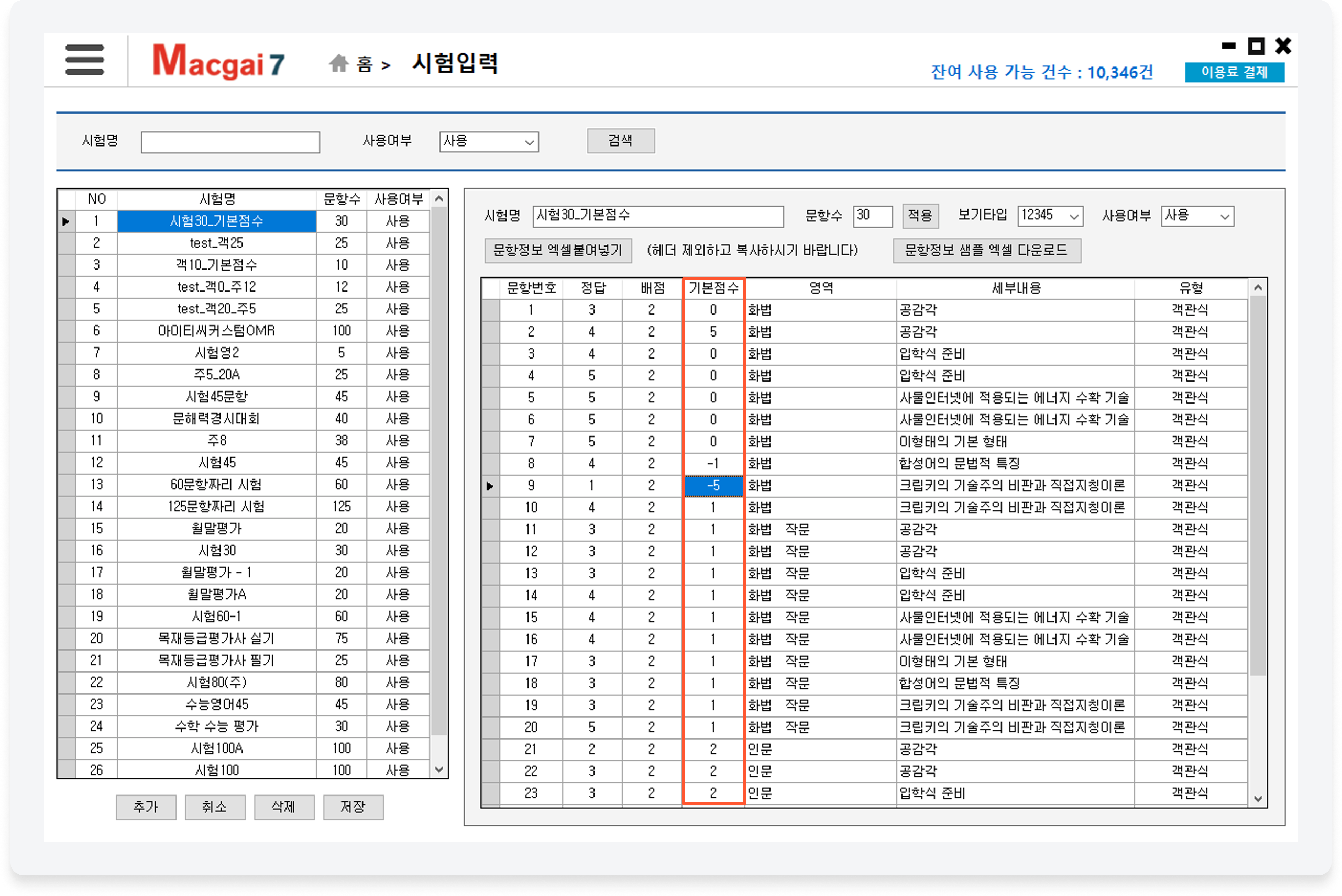 시험 입력 시 문항별 기본 점수를 부여할 수 있는 기능이 추가되었어요.