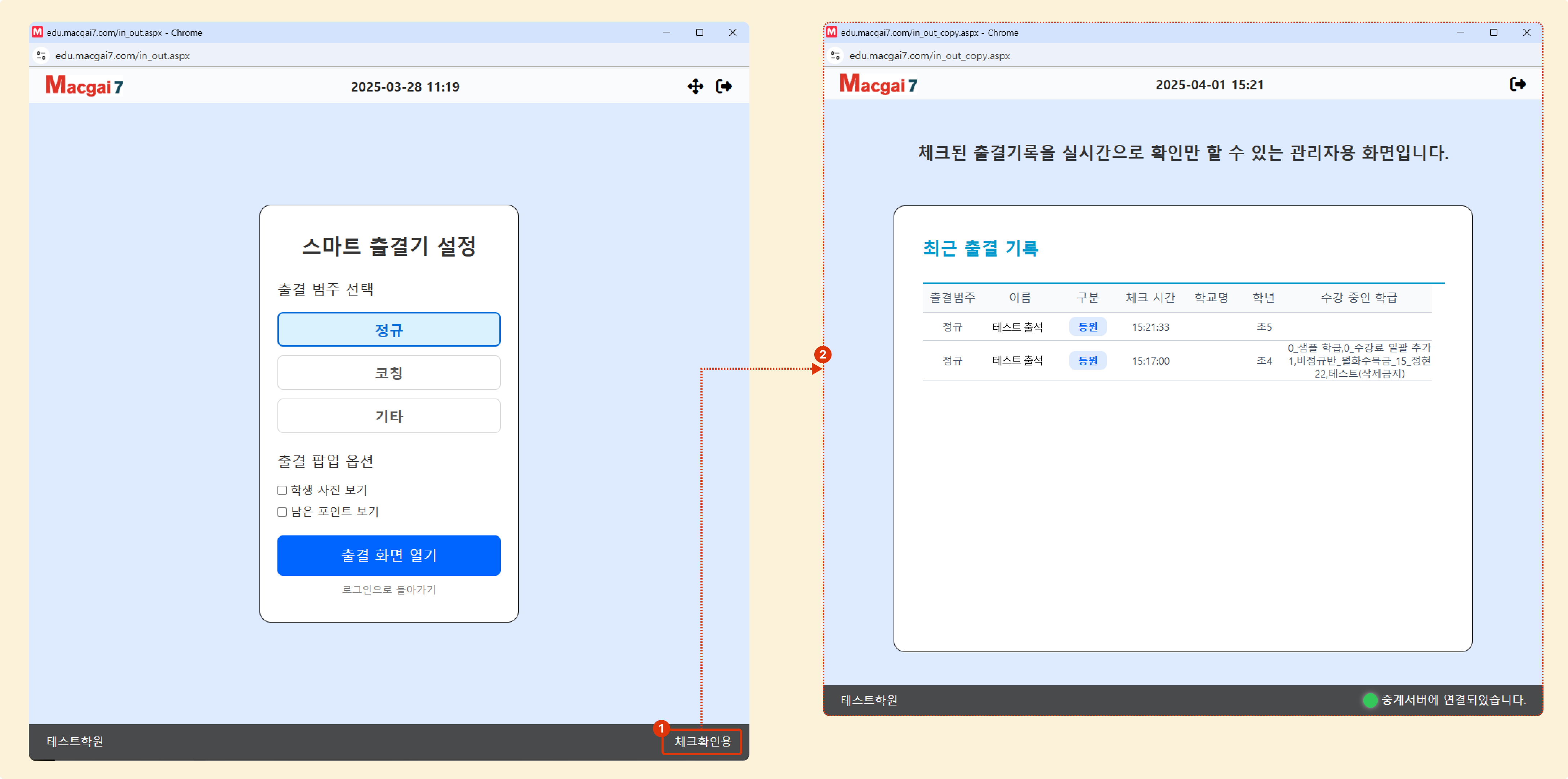 사용 중인 PC에서 실시간 출결 모니터링이 가능해요. 자세히 보기↗