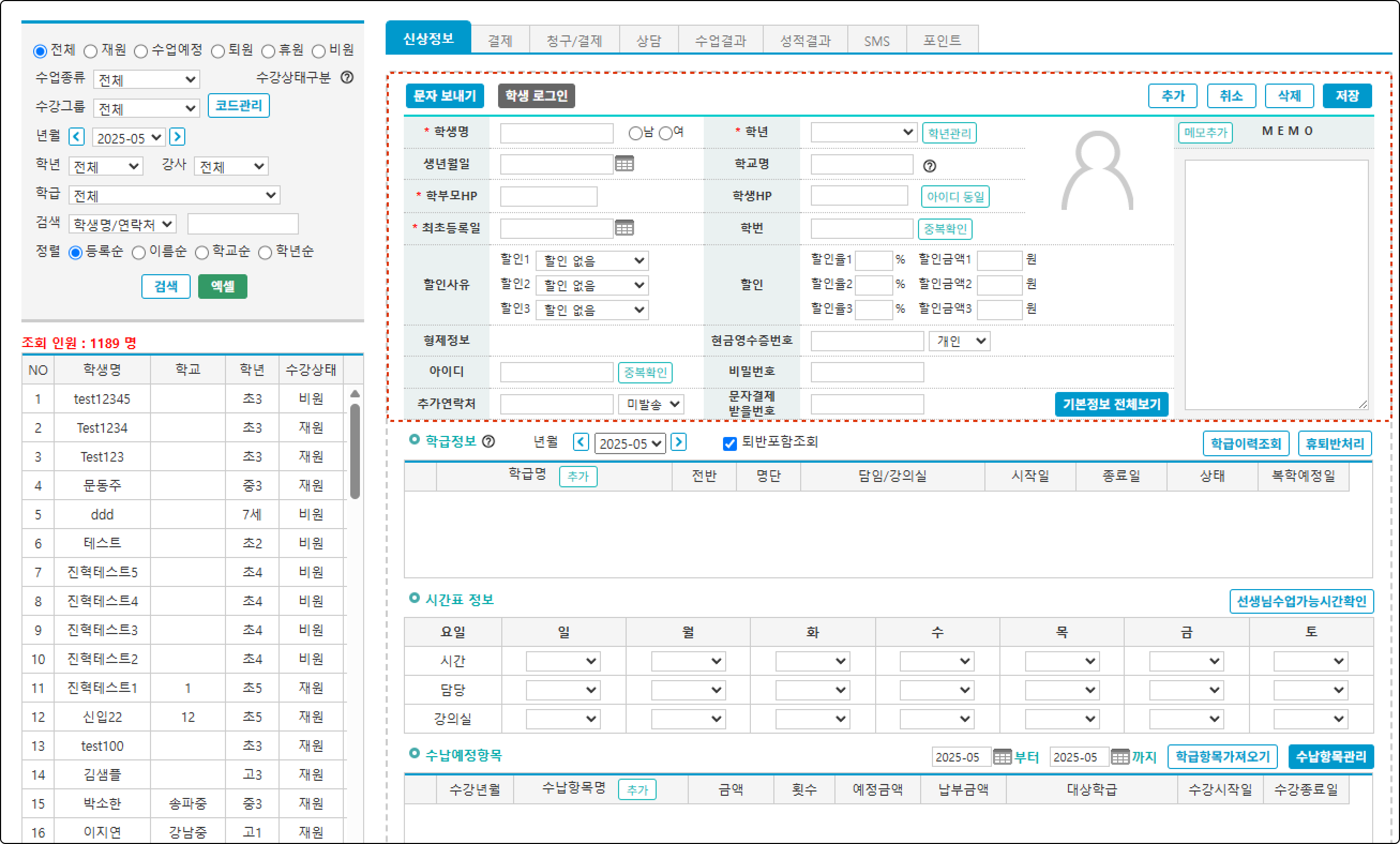 정원 체크는 신규로 추가되는 학생들의 시작일 기준입니다.