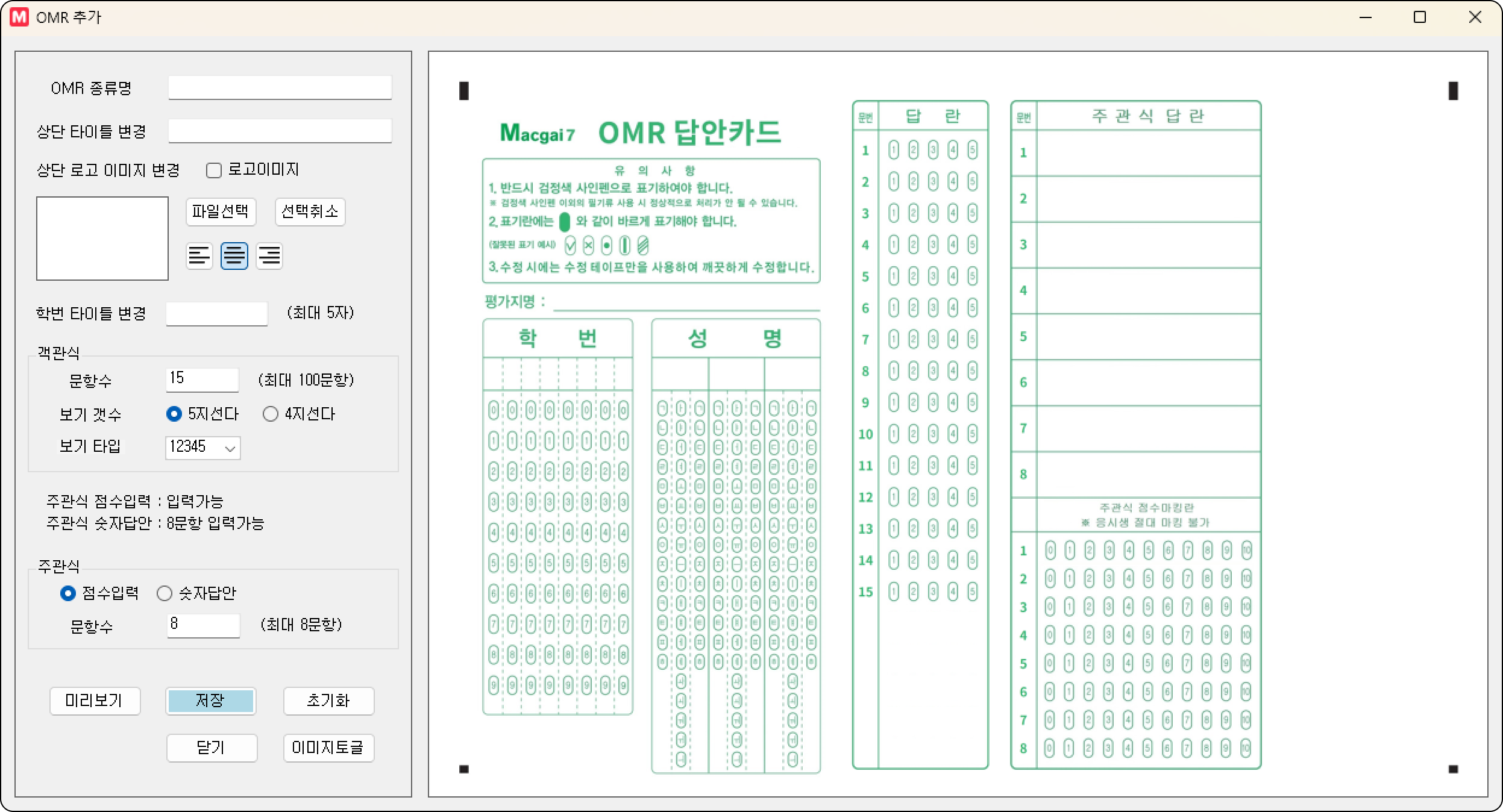 OMR을 정해진 양식 내에서 원하는 형태로 생성할 수 있어요. 자세히 보기↗