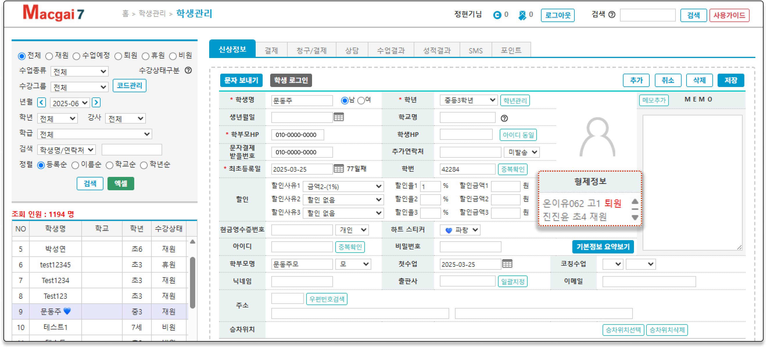 형제의 수강 상태를 확인할 수 있도록 형제의 수강 상태를 표시하도록 추가되었어요.