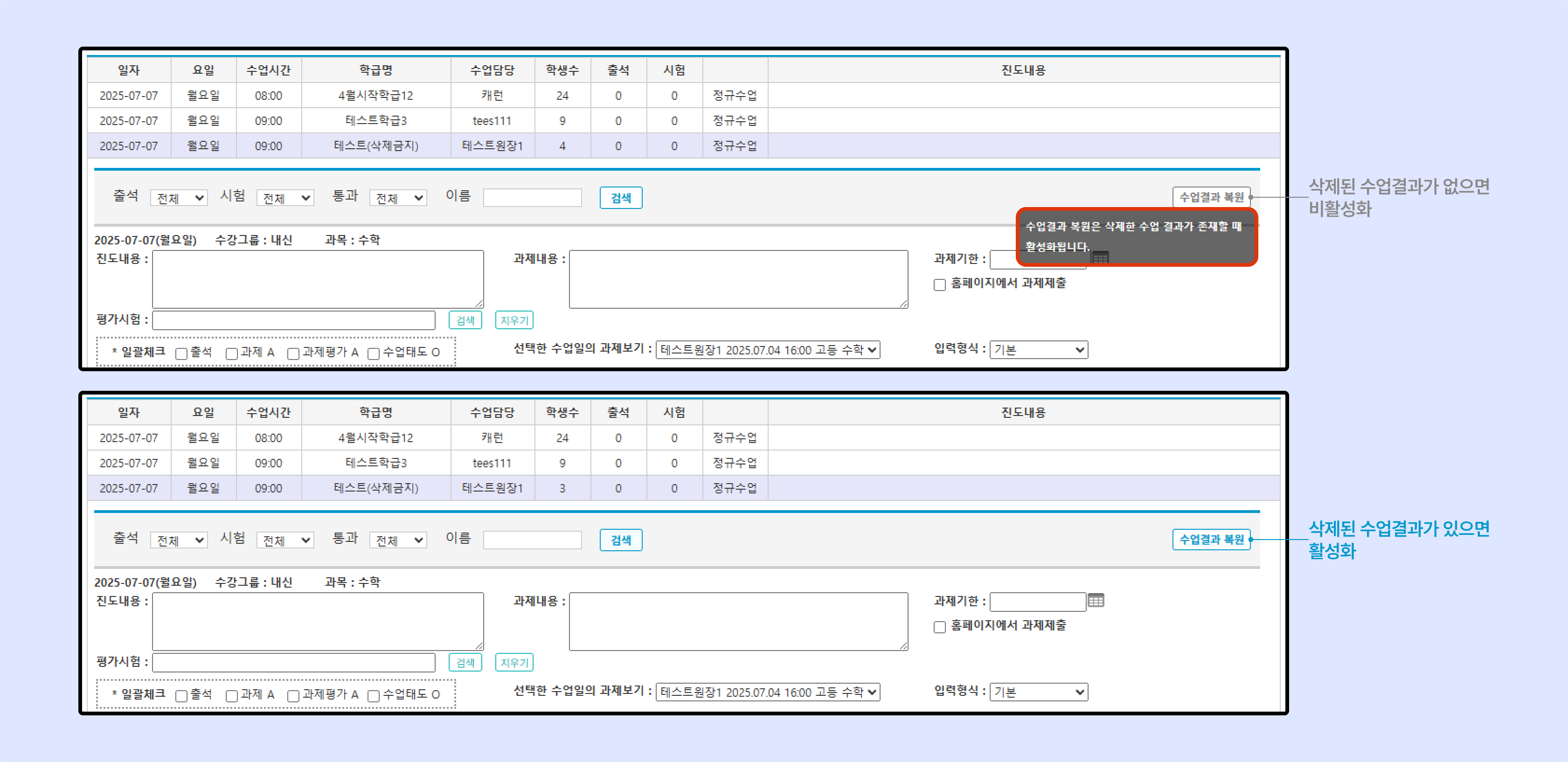 삭제된 수업 결과를 복원할 수 있는 기능이 추가되었어요. 자세히 보기↗