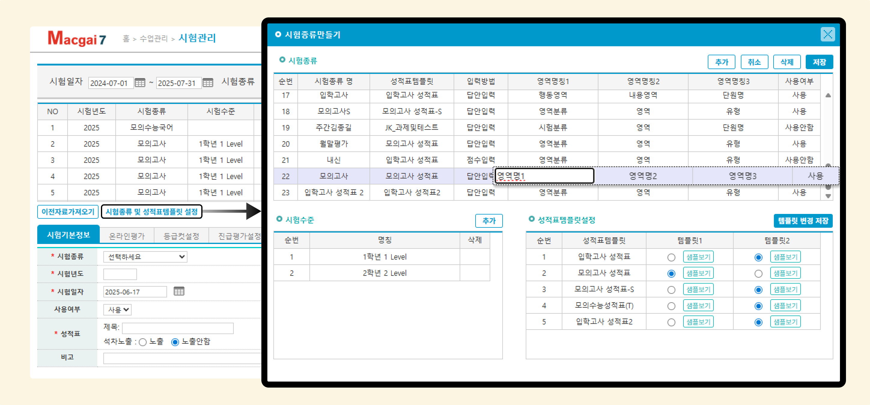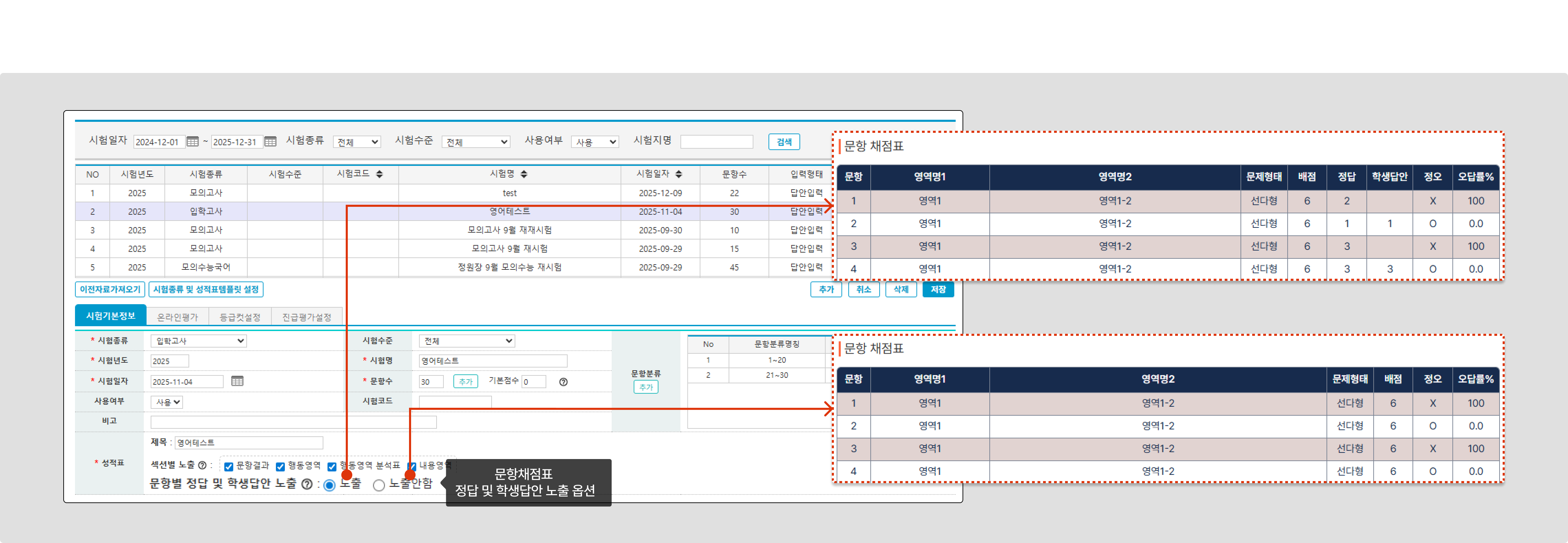 시험별 문항명칭을 수정할 수 있는 기능이 추가되었어요. 자세히 보기↗