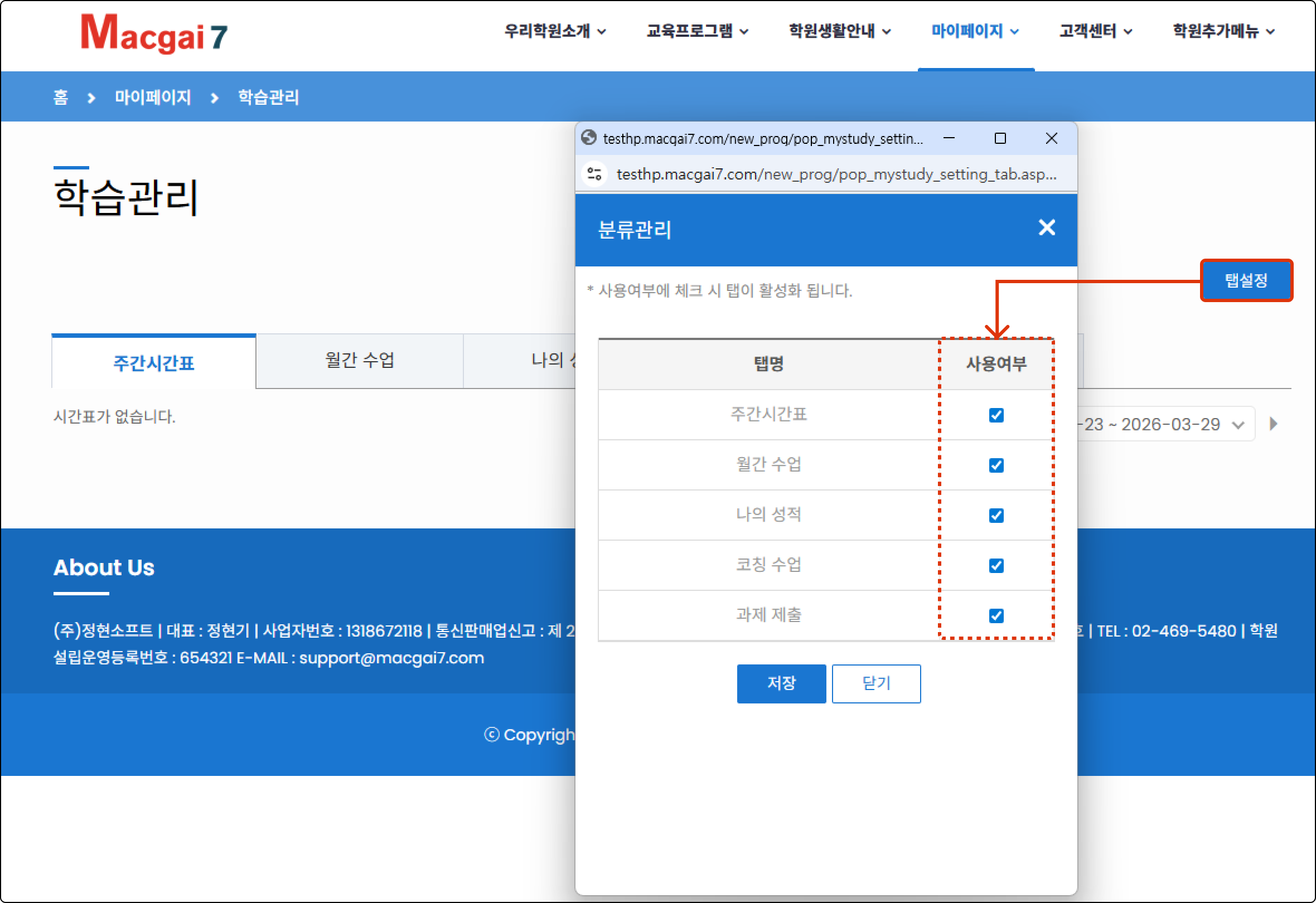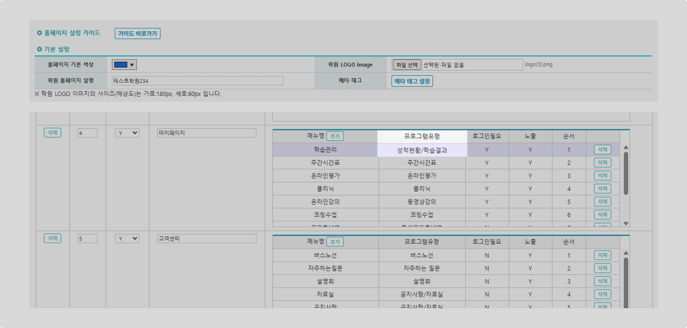 [연동 홈페이지] 학습결과 탭 설정 추가