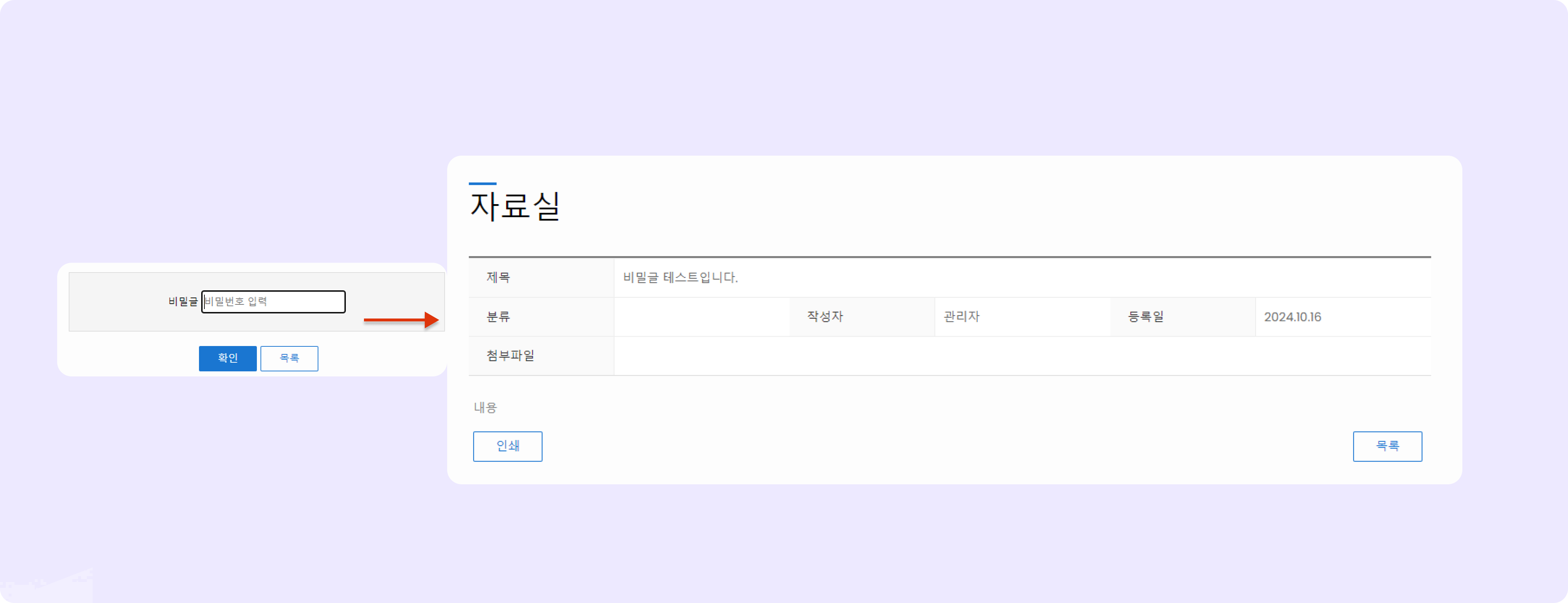 개별 게시글에 비밀번호 지정이 가능하며,