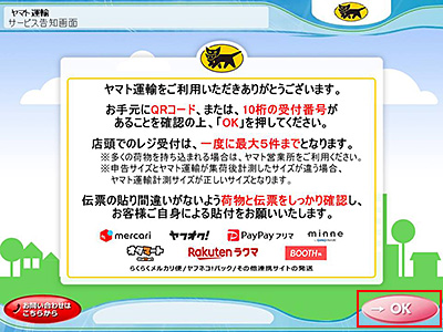 「OK」をタッチし、次の画面にて準備をしていただいたQRコードを指示にしたがい読み取ってください