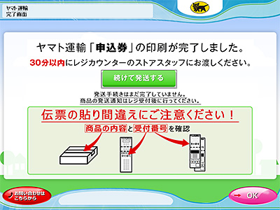お客様自身で専用袋に伝票レシートを封入し、荷物に貼付してください