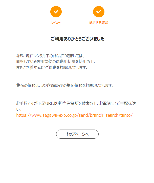 サービスサイトにログイン後、左上の三本線から現在レンタル中の商品、またはマイページを選択
