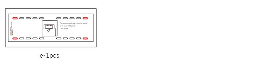 2)位置決めガイド【e】で穴あけ位置を確認し、8か所に印をつける