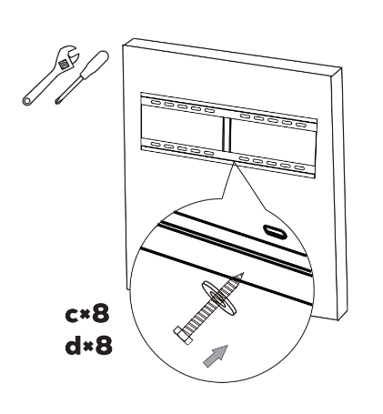 5)下図の通りに、壁掛けフレーム【a】を ネジ【c】、ワッシャー【d】で expansion アンカー 【b】に固定する