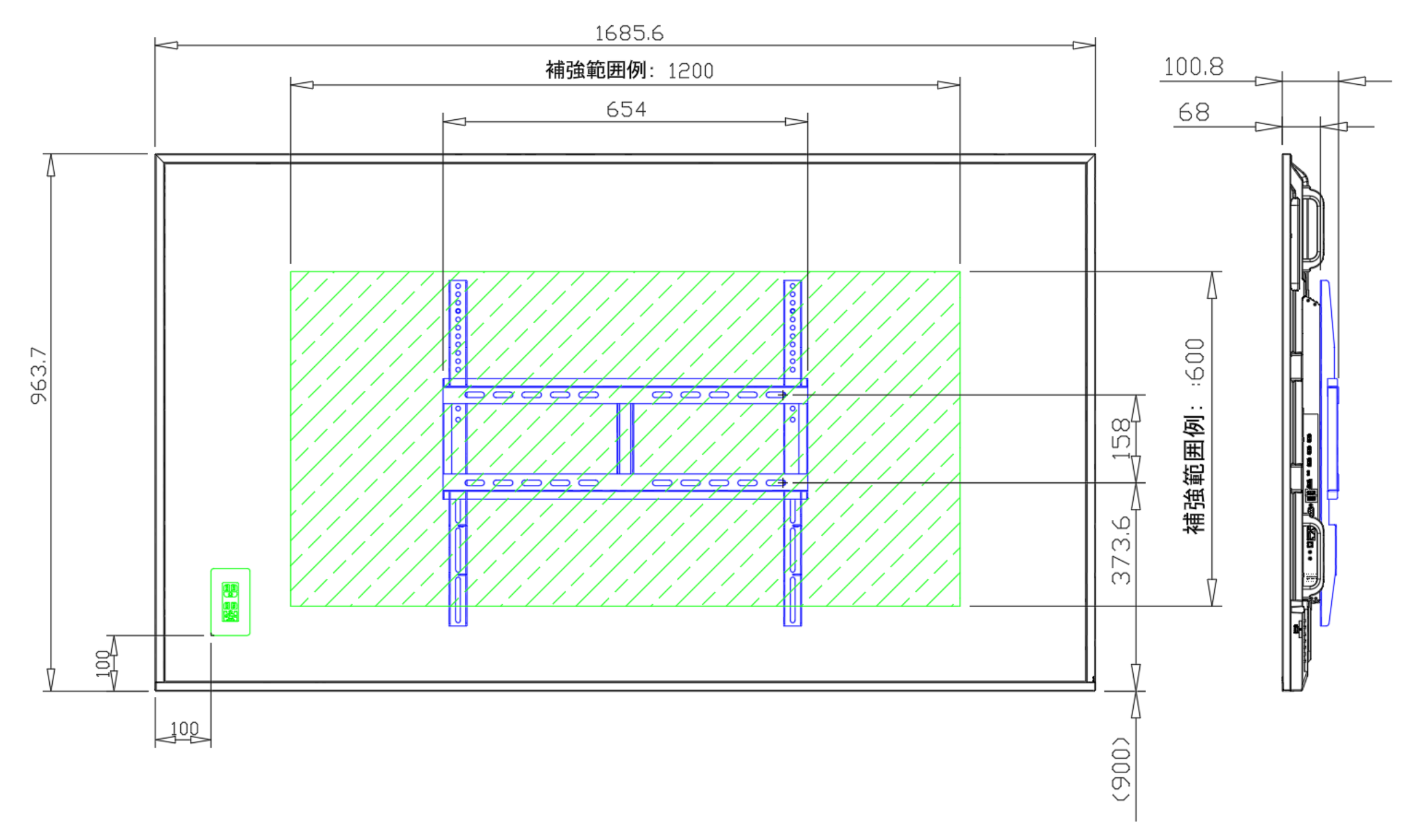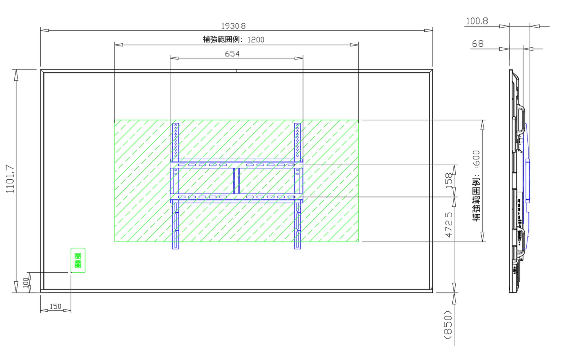 緑ハッチング範囲は補強範囲例となります。