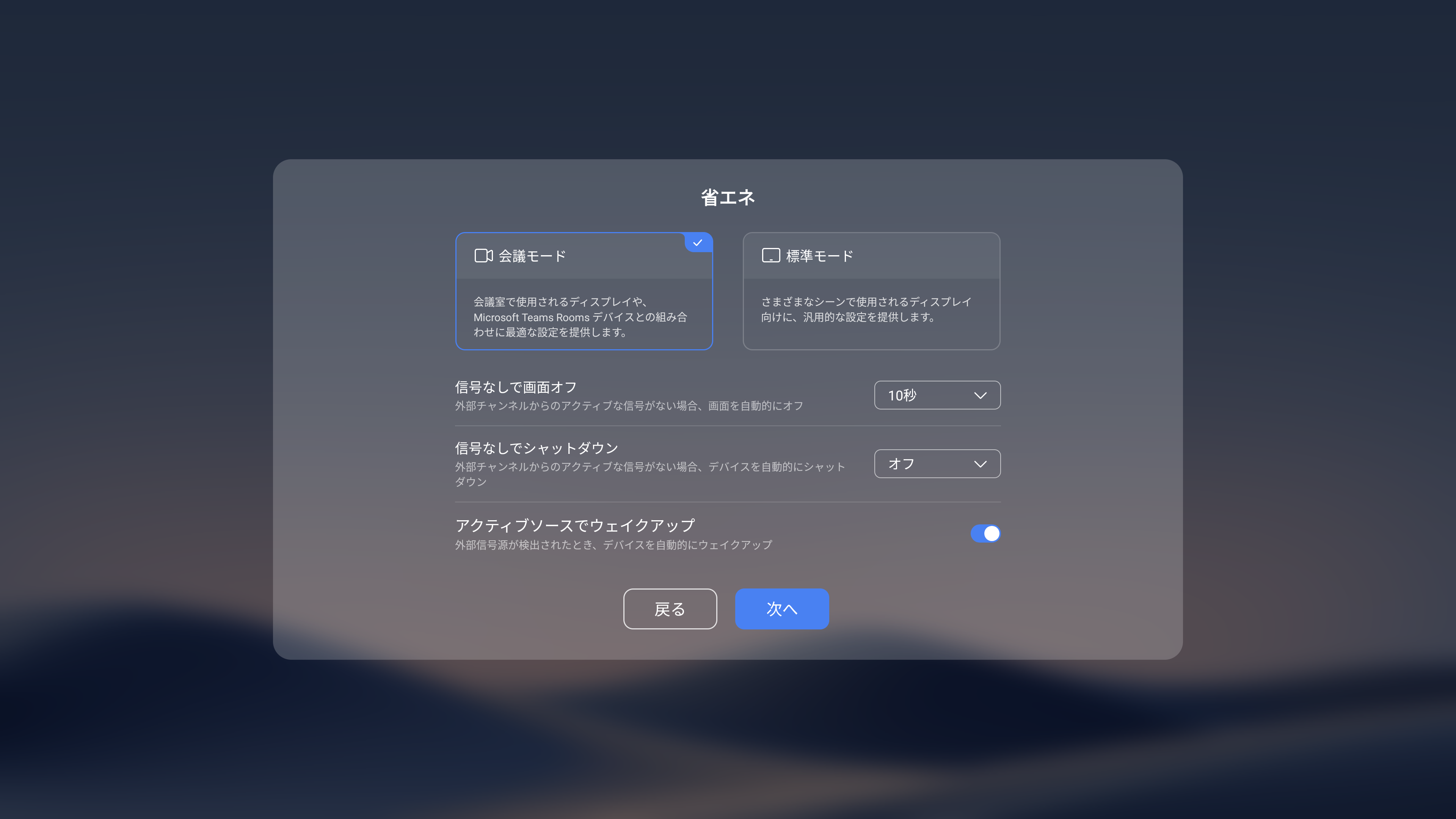 会議モード:常時信号ソースが接続されるディスプレイに適したモードです