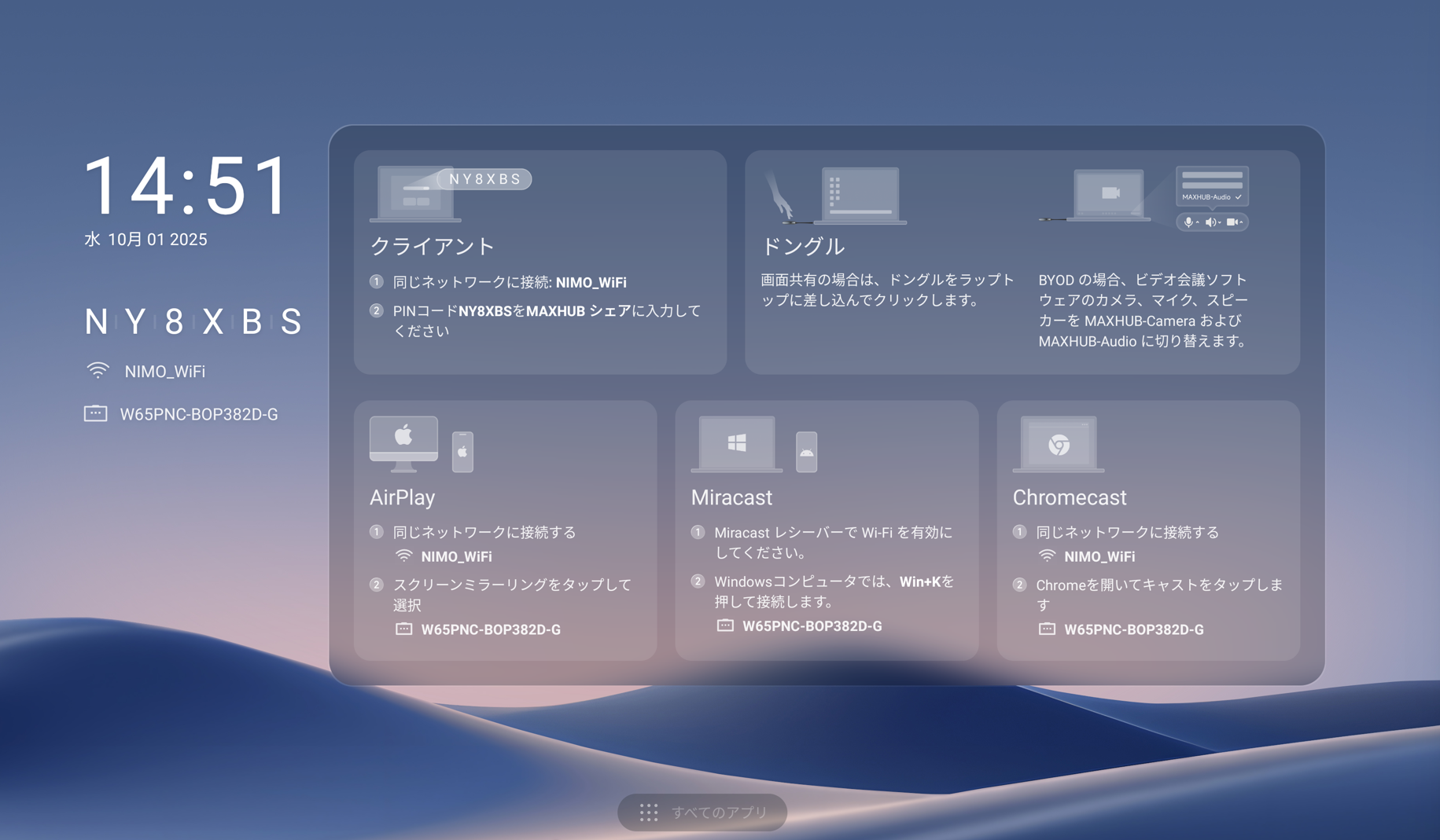 社内ネットワークに参加することでワイヤレスドングル以外の投影方法を使うことができます(ミラーリングディスプレイⅢ)