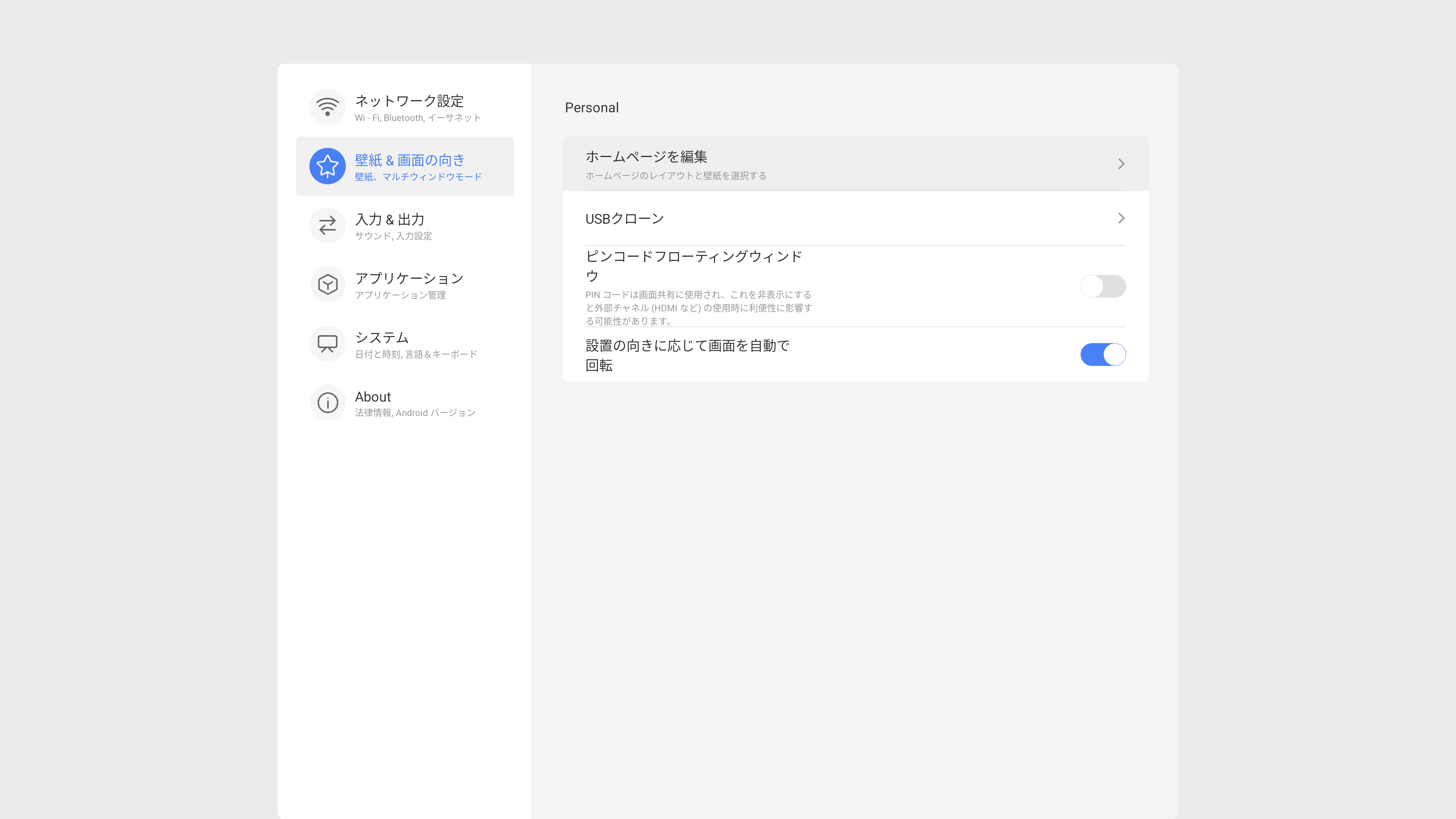[設定] - [壁紙&画面の向き] - [ホームページを編集] を選択します