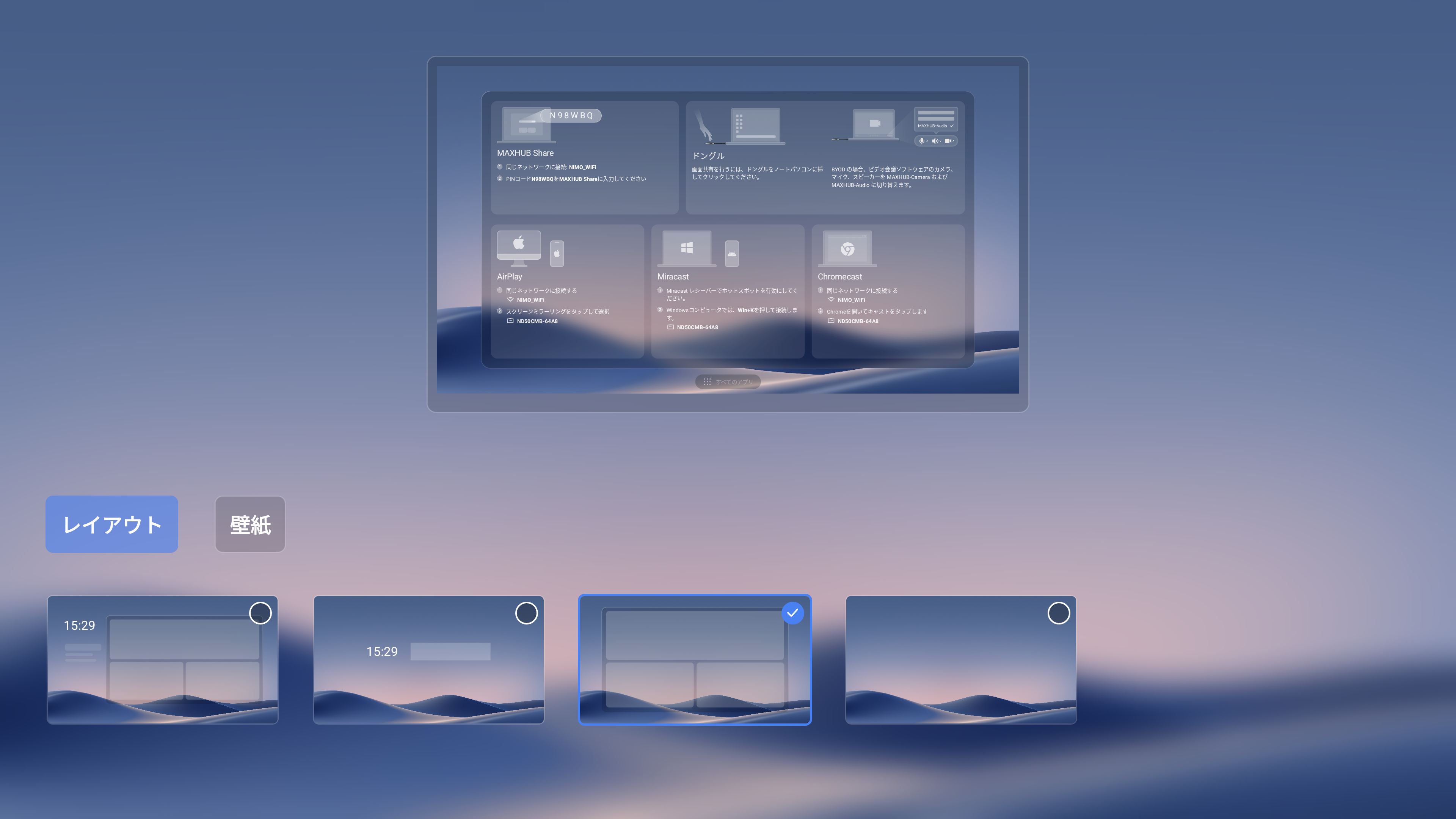 ネットワーク接続を行わない場合、ホーム画面レイアウトを時計表示のないレイアウトに変更します。