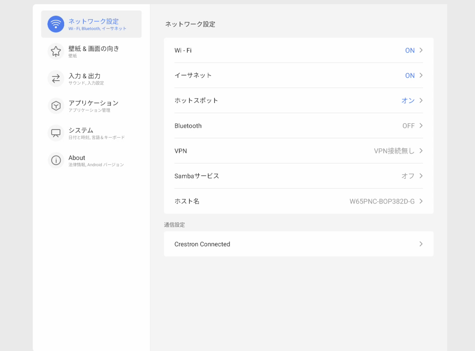 Wi-Fi設定、有線LAN設定、ホットスポットの設定ができます。