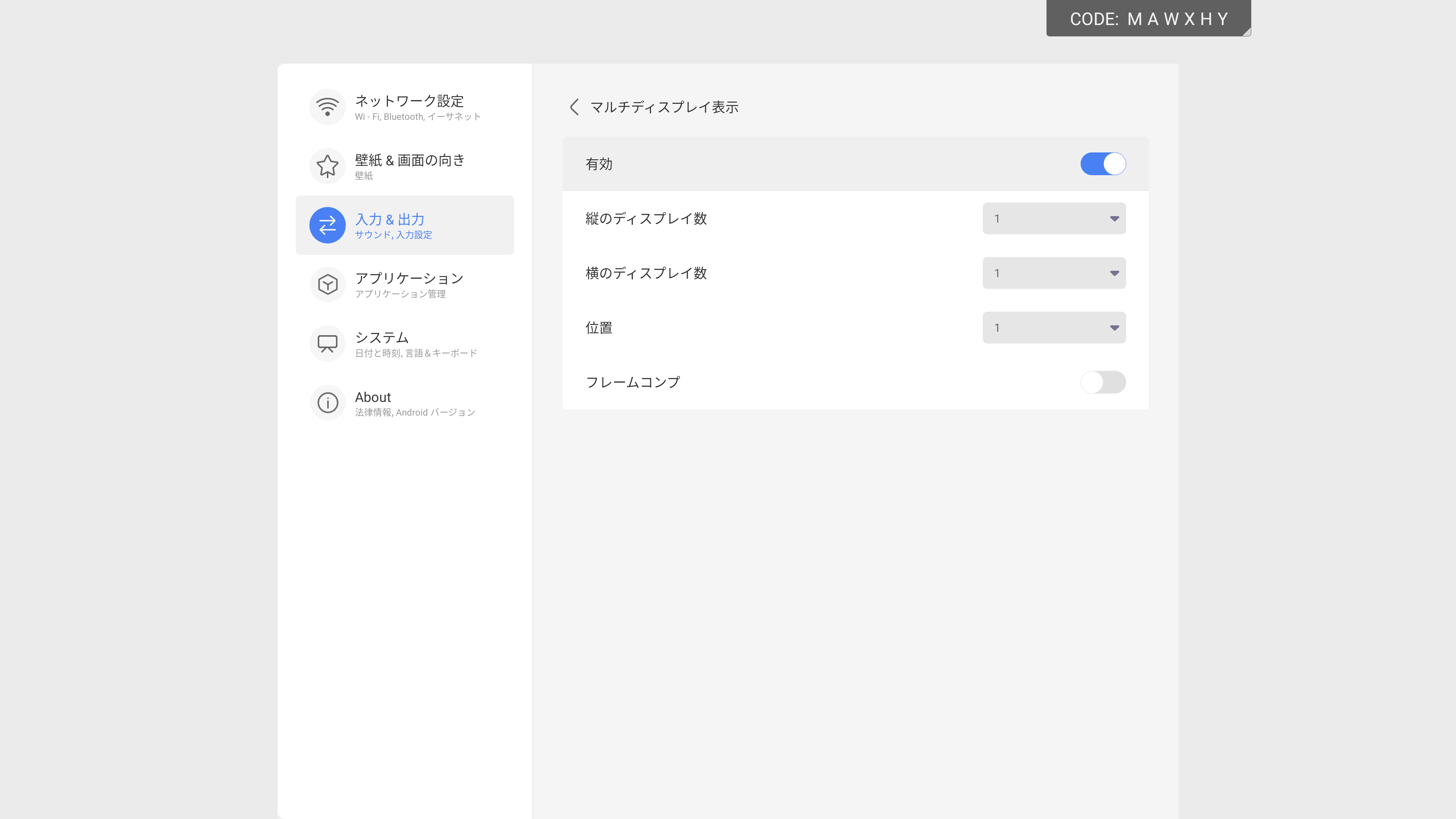 横のディスプレイ数 | マルチディスプレイの有効の横の個数を設定 |