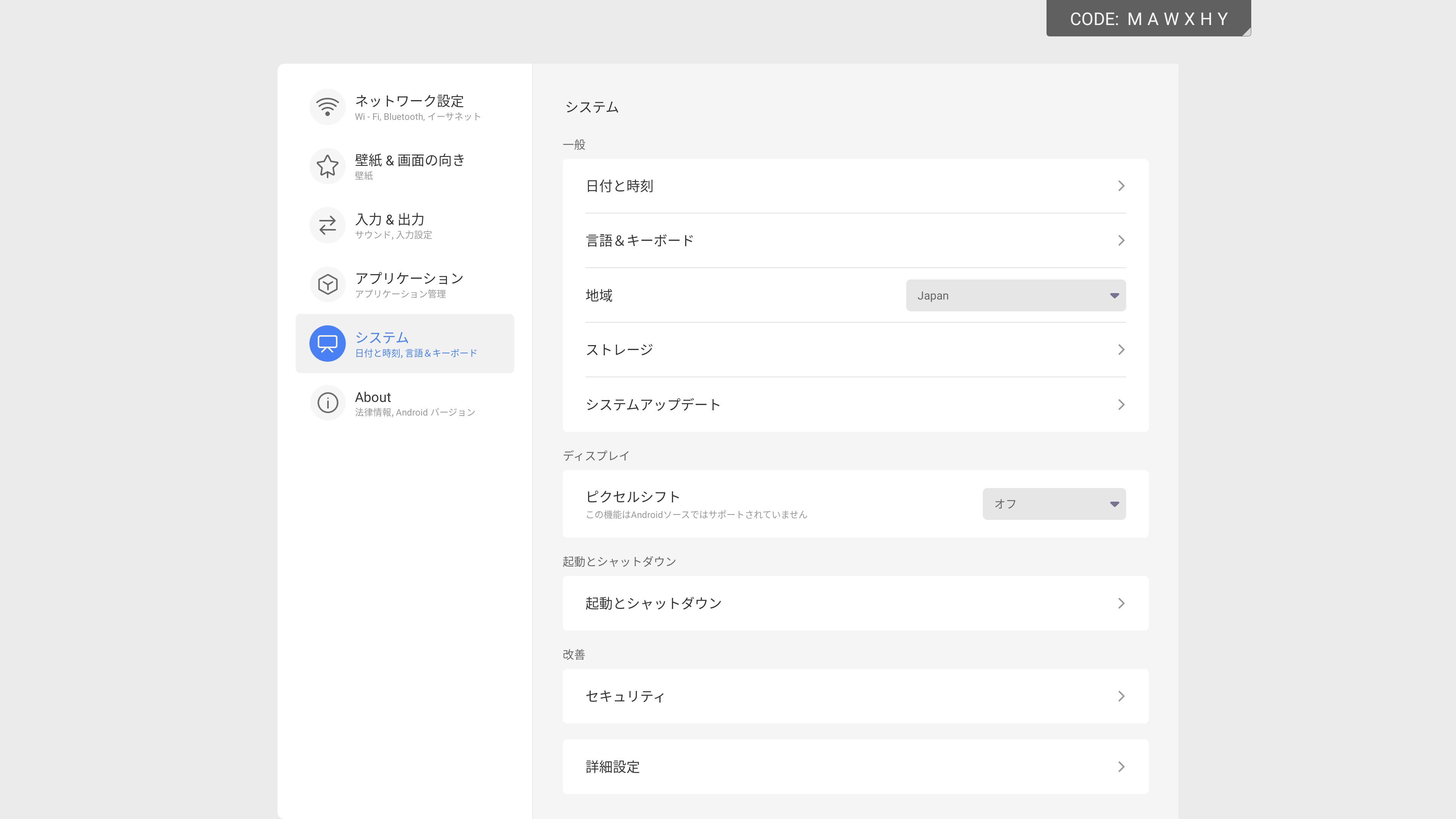 起動時のロゴと動画 | 起動時に表示されるロゴとアニメーションの設定 |
