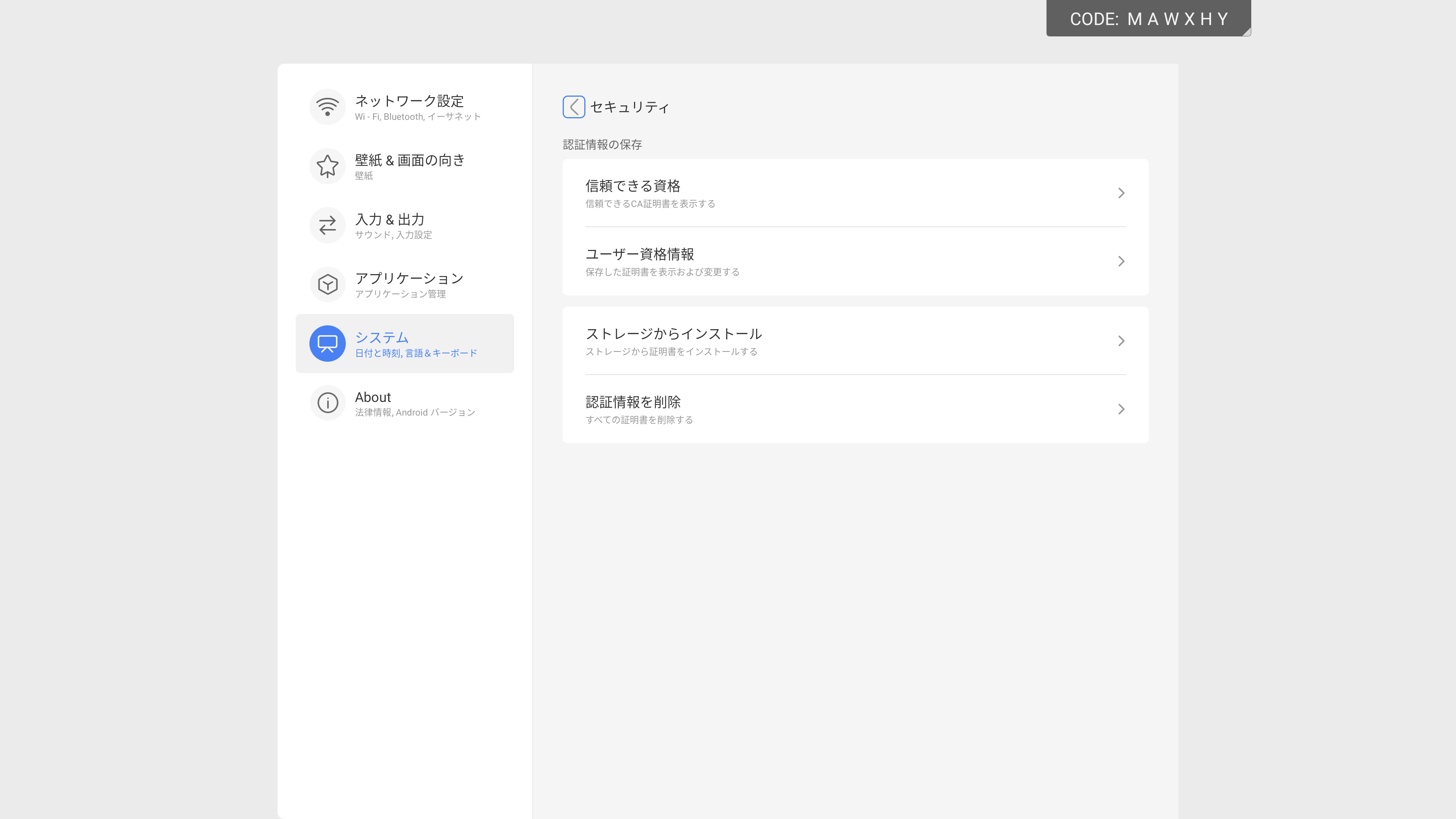 ユーザー資格情報 | 登録されている証明書の確認と変更 |
