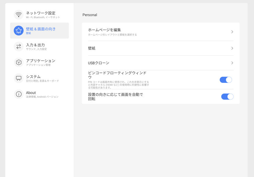 設置の向きに応じて画面を自動で回転 | 縦向き・横向きの設置方向に応じて画面が自動回転する |