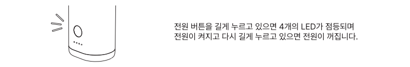 전원 버튼을 3초 이상 길게 누르면 4개의 LED가 점등되며 전원이 켜집니다.