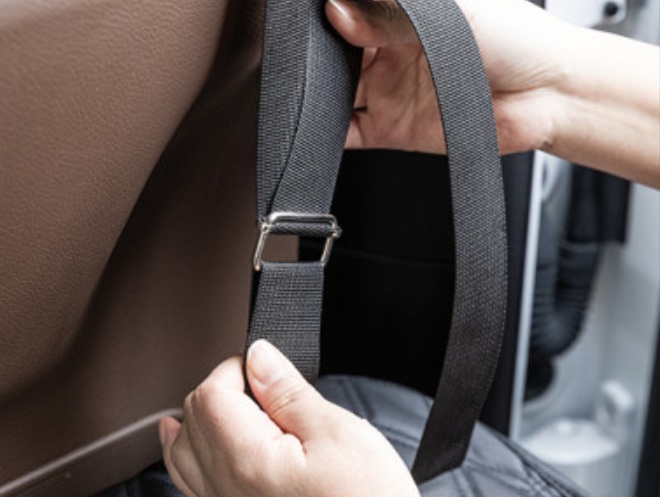 서로 연결된 스트랩을 헤드레스트에 걸어주면 끝! 높이에 맞게 길이를 조절해 주시면 됩니다.