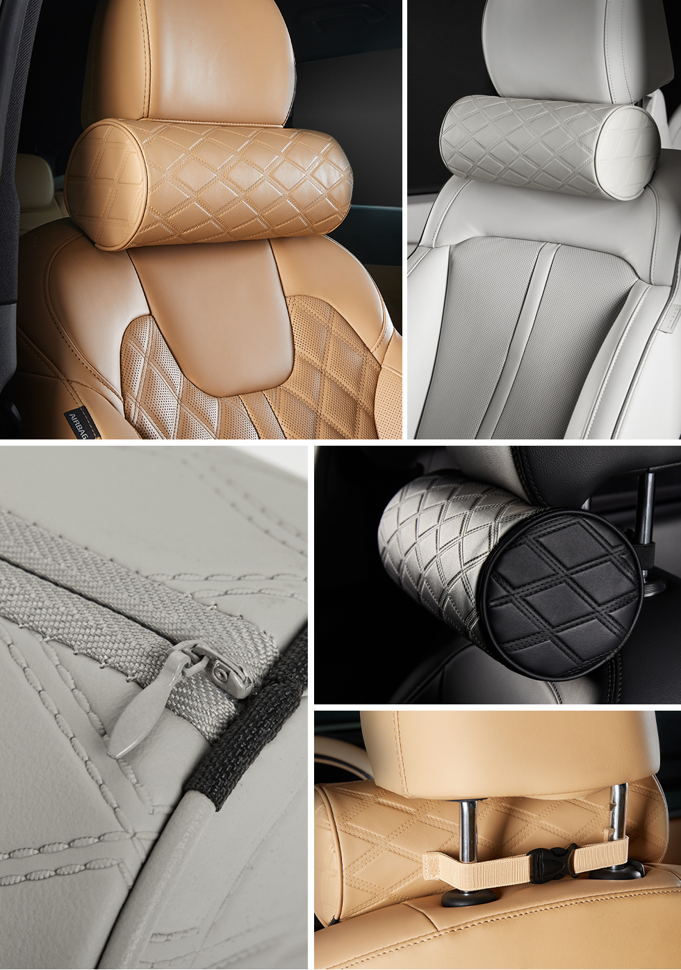 인체공학적 설계와 고밀도 메모리폼 충전재를 사용해, 장시간 운전 시 목과 어깨의 피로를 줄여주는 차량 필수 아이템입니다. 부드러운 인조가죽 커버와 퀄팅 자수 디자인으로 고급스러운 분위기를 더합니다.