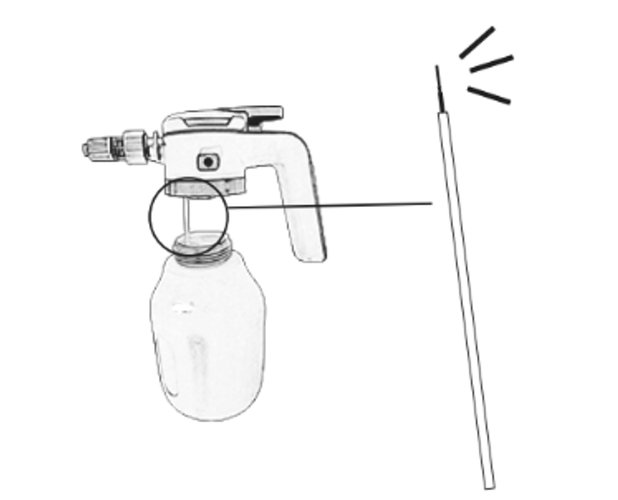 압력은 있으나 소량 거품만 분사됨 | 용액 농도가 너무 낮음 액체 농도가 너무 진함 | 용제를 추가해 농도 높이기 물을 넣어 희석 |