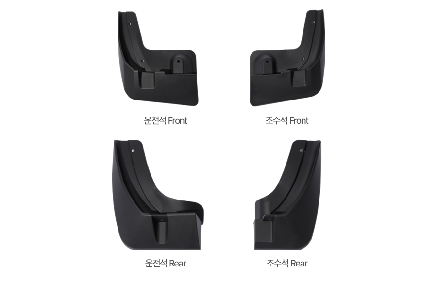 제품 구성 | 머드가드 4pcs 일반 고정핀 운전석 리어 전용 고정핀 |