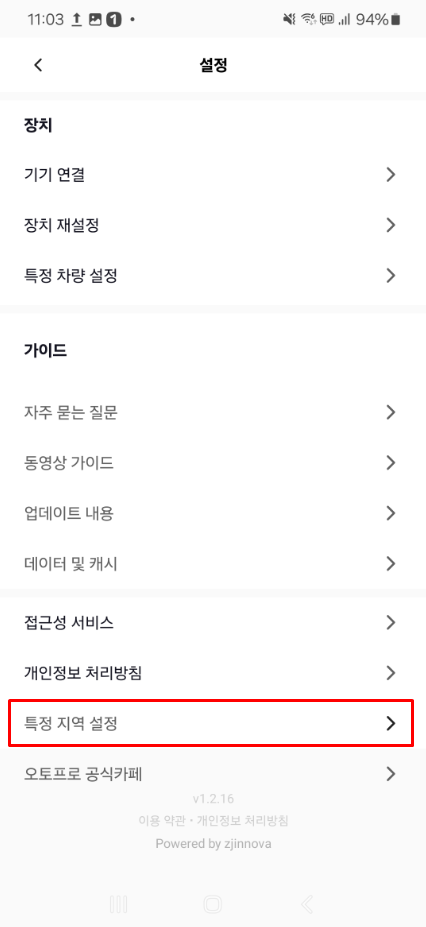 설정의 지역 설정 기능은 사용 지역과 무관한 개발 기능입니다. 따라서 지역명이 다르더라도 변경하지 않고 그대로 사용합니다.