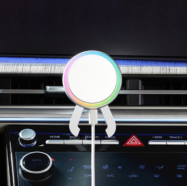 메이튼 차량용 맥세이프 충전 거치대는 메이튼 차량용 맥세이프 충전 거치대는 Qi2 공식 인증 15W 고속 무선 충전으로 전력 손실 없이 안정적인 충전을 제공합니다.무소음 방열 알루미늄 바디와 10가지 앰비언트 라이트가 적용된 완성형 디자인으로 세련된 분위기를 연출합니다.또한 500G MagForce™ 자력으로 흔들림 없이 스마트폰을 고정하며, 다양한 차량과 호환되어 안정적이고 편리한 주행 경험을 제공합니다.