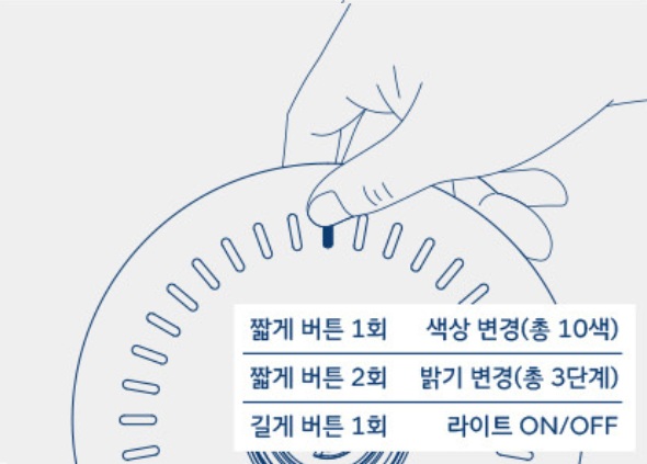 후면에 위치한 LED 버튼으로 앰비언트 라이트 컬러 변경과 제어가 가능합니다.