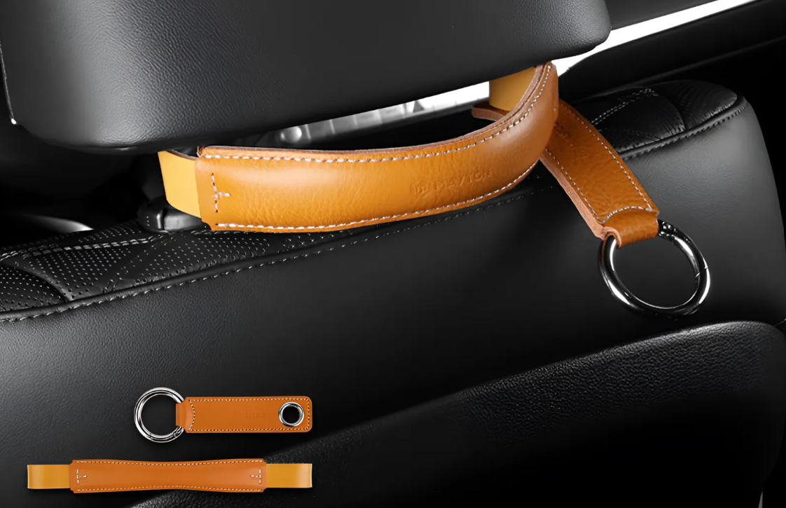 튼튼한 구조와 고급스러운 가죽 마감으로 차량 인테리어와도 자연스럽게 어우러지며, 가방·쇼핑백·우산 등 다양한 물건을 깔끔하게 걸어둘 수 있는 실용적인 후크 기능을 갖추고 있습니다. 별도의 공구 없이 헤드레스트에 간편하게 장착 가능해 누구나 손쉽게 사용할 수 있으며, 작은 디테일 하나로 차량의 편의성과 품격을 동시에 높여줍니다.