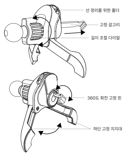 너무 강하게 조이면 차량의 송풍구 날개부분 탈거/파손의 우려가 있습니다.