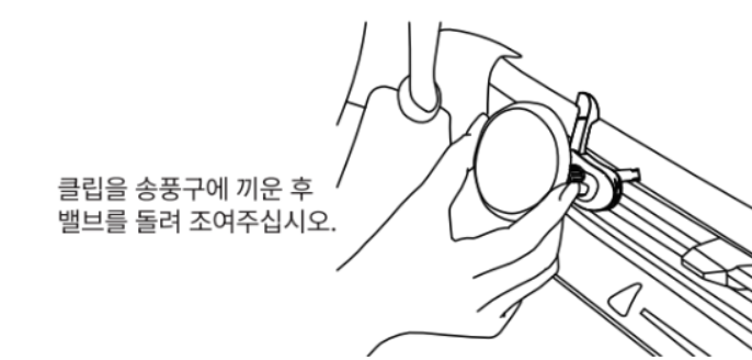 클립을 송풍구에 끼운 후 밸브를 돌려 조여주시기 바랍니다.