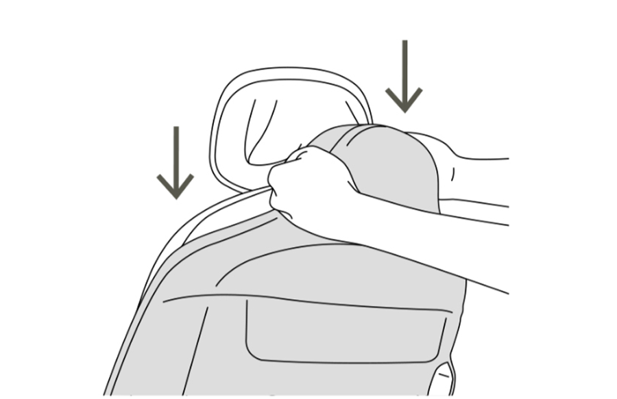 먼저 장착 위치를 확인한 뒤, 커버 상단을 시트백 틈새에 부드럽게 끼워 단단히 고정해 주세요.