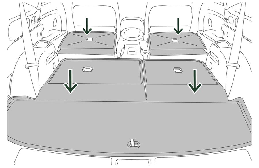 ※ 트렁크 시트 폴딩 손잡이가 있는 차량은 칼 선 부분을 따라 손잡이를 빼내어 사용합니다.