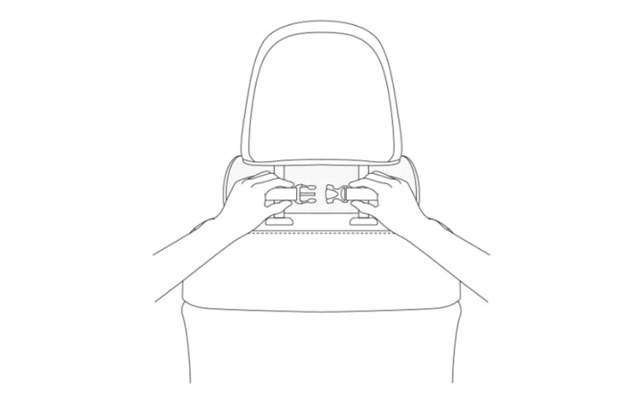 목쿠션의 후크를 목받침에 끼운 뒤, 목쿠션의 위치를 바르게 정돈해 주시기 바랍니다.