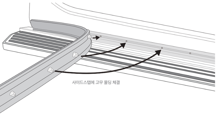 분리한 고무 몰딩을 팰리카빈 사이드스텝에 다시 장착해 주시기 바랍니다.