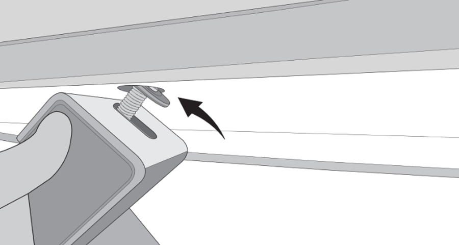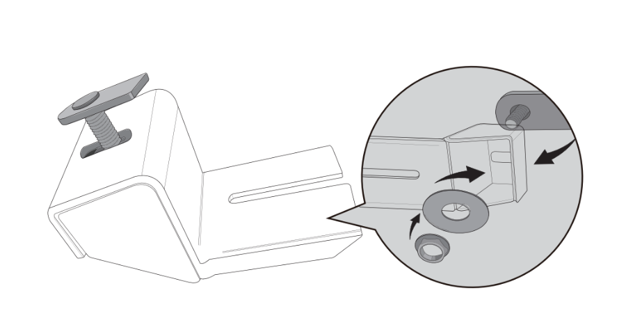 철제 브라켓의 홈 부분에 너트를 바르게 정렬한 후, 볼트를 체결해 주시기 바랍니다.