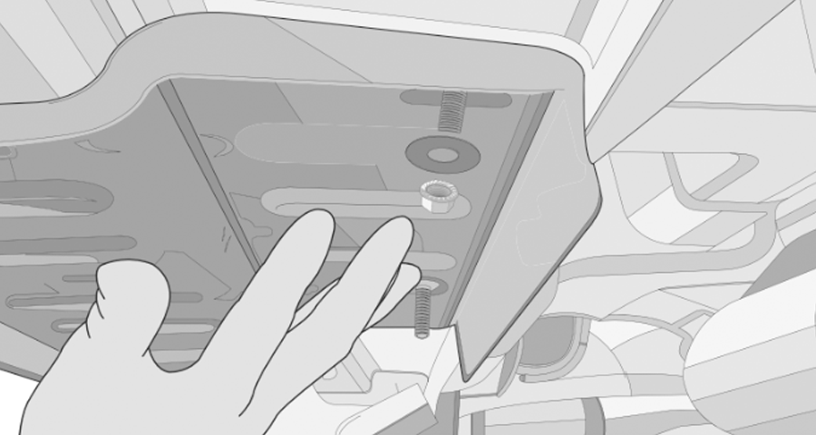 M6 T자형 볼트를 차량 하단의 두 개 사각 홀 위치에 맞춰 끼워 주시기 바랍니다.