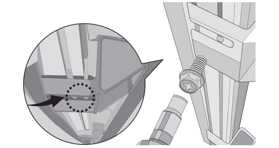 이때 과도한 힘으로 조이면 볼트가 깎이거나 파손될 수 있으므로, 일정한 힘으로 천천히 체결해 주시기 바랍니다.