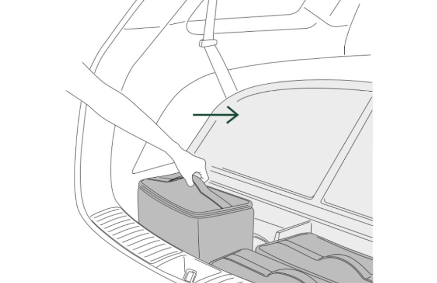 커버 아래에 위치한 공간에 제품을 넣어 주시되, 가방 손잡이가 윗부분을 향하도록 배치해 주시기 바랍니다.