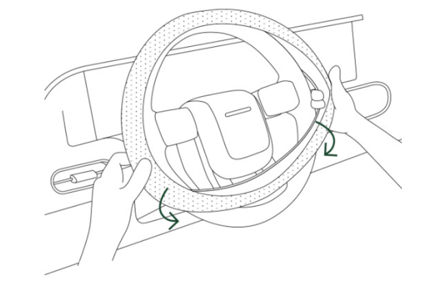양손으로 핸들의 상단부에 커버를 맞춘 후 중심을 잡아 끼우고, 양쪽 옆면을 잡아 좌우로 당기면서 커버를 아래쪽으로 씌워 주시기 바랍니다.